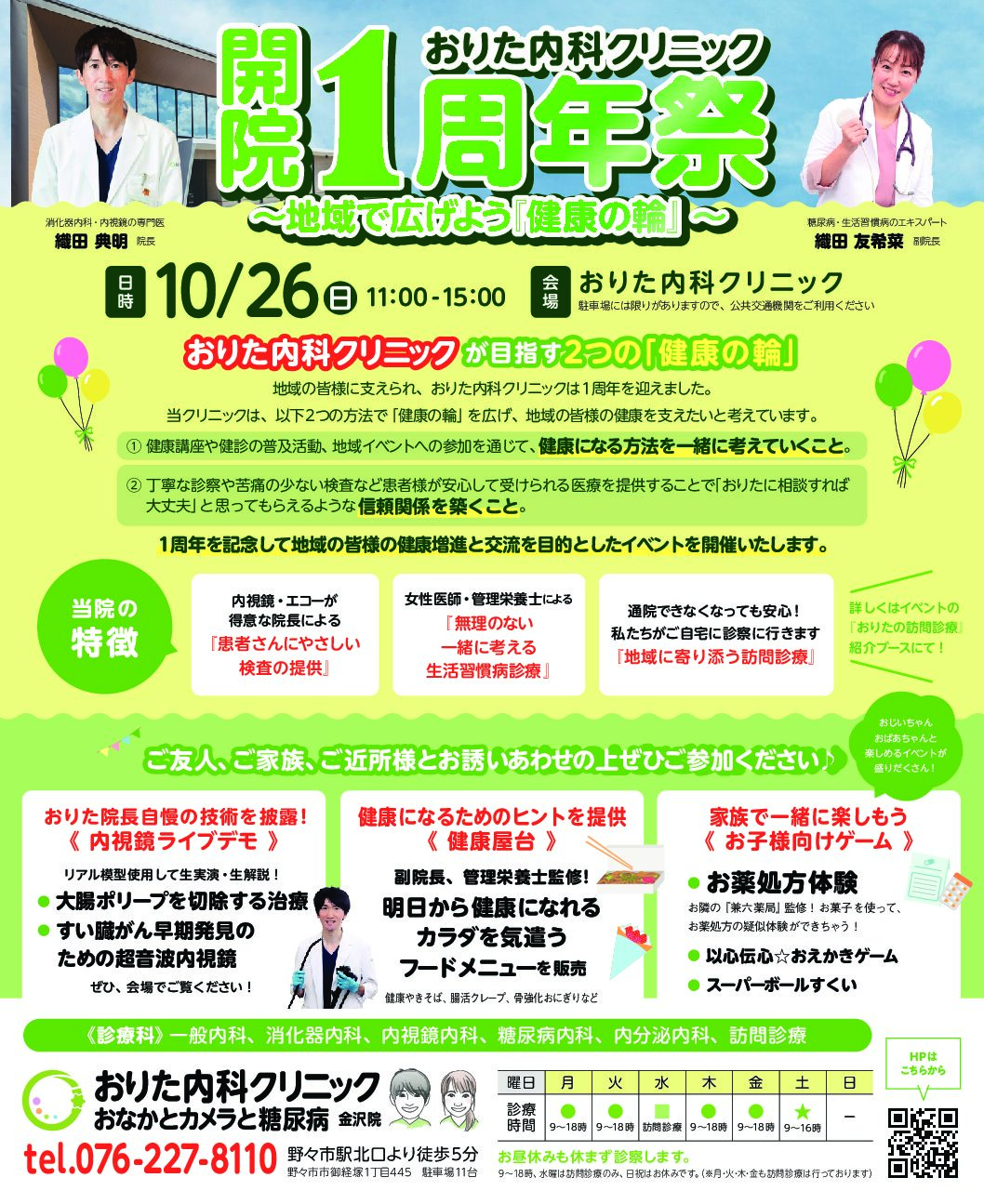 こんにちは。 「おりた内科クリニック『おなかとカメラと糖尿病 金沢院』」院長の織田です。